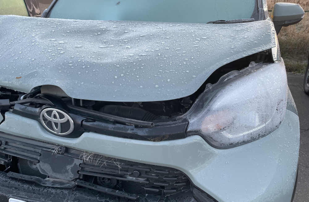飛来物によりフロントバンパ損傷